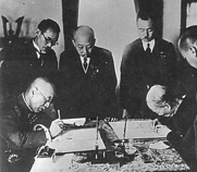 そして、その後の様々な事態進行を受け、最終的には米英と対立し太平洋戦争へと突入していくことになる。この間、米国との間では戦争を避けようとの様々な外交的な試みもなされたのも事実だが、日独防衛協定の締結などをへて米国との決定的な対立、戦争への道は避けられなかった。 この事態の進行を示す外交文書としては、次のようなものが史料館には展示されている。