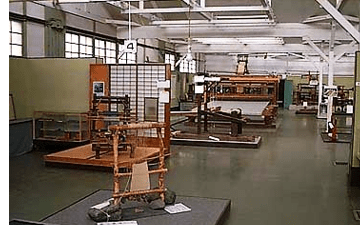 → 織物参考館“紫”では、日本の伝統織物の歴史を知ってもらうため、古い染織技術、文化の発展、足跡を物語る貴重な資料1200点余りを展示している。特に、織物古器具、古織機等の保全、管理、公開をはかっており、現在も行なわれている「まゆ」から糸をとり染色して織土げる過程を紹介、今と昔の染織産業への理解を深めることを期待している。また、新企画と致して、現在実際に活動している織物工場を解り易く見学、桐生織物1,300年の歴史が実感として体験できるプログラムも用意している。