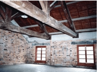 → 明治政府による板ガラスやガラス瓶の製造工場建屋。西欧の技術導入によるガラス国産化努力が示されている。