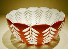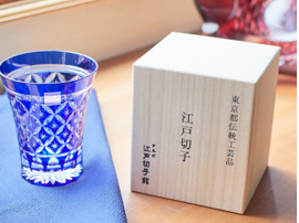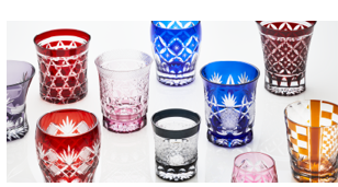 → 江戸時代から受け継がれたガラスの表面に文様を施した工芸品。明治時代、ヨーロッパのカットグラス(切子)の技法を取り入れることで独自の工芸技法が確立した。江戸切子独自の文様は20種類ほどあり、日本古来から身近にある花や植物などの自然がモチーフとされる。2002(平成14)年に国の伝統的工芸品に指定。日本を代表する工芸品のひとつとして、東京都江東区・隅田区を中心に、現代の職人たちがその技術を継承している。江戸切子の魅力は、その輝きと細かい文様にあるという。