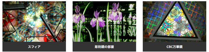 → 従来の美術館とは全く違ったコンセプトで作られたガラス美術館。人の手が作り出した「生」の作品が魅力で、作品と人が一体化する斬新なアプローチを試みたとする。人が入れる巨大万華鏡のある体験型ミュージアムで、 2000年ギネスに認定された世界最大級の万華鏡をはじめ、独創的なアートで知られる体感型ミュージアムとなっている。