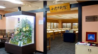 →「和紙工芸館」では和紙づくりを気軽に体験できます。豊田小原和紙工芸の魅力を存分に楽しむことができる美術館で、全国の和紙標本や個性豊かな和紙工芸作品、小原地区特有の美術工芸作品、そして豊田小原和紙工芸の創始者で、近代工芸の先駆者でもある藤井達吉翁の作品等を展示している。