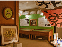 ここでは、人間国宝・安部榮四郎が築き上げた出雲民藝紙の紹介はもちろん、民藝運動を通して出会った仲間達の作品が展示されている。柳宗悦やバーナードリーチなど多くの民藝作家の作品をはじめ、交友の深かった棟方志功の作品なども展示させている。