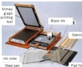 印刷博物館は大手活版印刷メーカー・トッパンの博物館であるため、日本で戦後盛んに行われるようになった軽印刷、謄写印刷についてはあまり触れられていない。しかし、この印刷方式は、印刷原紙とインクがあればどこでも印刷が可能な便利なもので、学校の教材やチラシなど少部数の印刷には最も適していた。これはパラフィン、ワセリンなどを塗った蝋紙に鉄筆で文字を書き、透過した部分にインクを乗せて印刷する「ガリ版」(謄写版印刷)とよばれた印刷方式であった。この原型は、エジソンが1890年代開発した「ミメオグラフ」であったが、これを明治年代1894年に発明家堀井新治郎が改良して作ったのが「謄写版印刷機」と呼ばれるものであった。これは原理が簡単で安価な上に、漢字数の多い日本語文書が自由に作成するため急速に普及したものとされている。