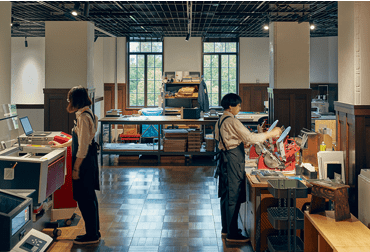 →「本と活字館」は、活版印刷の老舗大日本印刷(DNP)における印刷事業の歴史資産を公 開展示すると共に、日本で活版印刷がどのような形で発展してきたかを示す歴史博物館である。館内では、文字(秀英体)のデザイン、活字の鋳造から、印刷、製本まで一連のプロセスを展示しており、印刷機が稼働する様子や活版職人が作業する姿も動態展示の形で公開している。また、参加型ワークショップやイベントなどを通じて、印刷・製本・紙加工も体験できる。