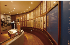一方、市場を全国に広げることを目指して、当時営業不調となっていた製粉会社「旧日清製粉」を合併、1908年には、企業合併を図り社名を館林製粉から「日清製粉」と改めている。また、当初から建設を進めていた横浜工場が完成、1909年には需要拡大も受け生産能力は900万バーレルに引き上げられている。また、1918年には、横浜工場内に化学研究所を開設、 化学研究の一環でグルテン検出する方法を開発したほか、原料小麦の調査も進めるなどして品質向上を図っている。そして、1919年には横浜工場内で食パンの量産を開始、「東京製パン株式会社」も設立している。これにより事業の基礎が出来上がったことになる。ミュージアムの歴史ゾーンでは、これら創業から事業の基礎を築くまでの過程を、数々の書類、装備機械、年譜などで詳しく展示解説している。