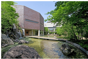 → 地元で「回転焼の老舗」として知られる和菓子メーカー御座候が、アメの主原料であるアズキの文化の伝承と創造活動の拠点とすべく2009年に開設した企業博物館。「あずき文化」を伝えるため、アズキの原産地である照葉樹林帯をイメージした里山庭園と一体で設計されていて興味深い。外壁をアズキ色に施された博物館の内部は、各階に跨って展示室が配置され、吹き抜けの展示室に置かれた実物10倍大の模型「10倍アズキ」を中心に、同心円状の回遊動線が設けられている。 この博物館は、2013年、日本展示学会賞作品賞を受賞している。