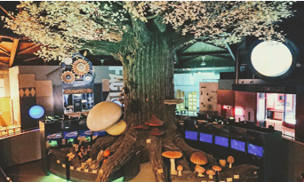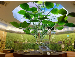 → 「きのこ」や「植物」たちがつくる「不思議なふしぎな森の世界」を再現する珍しい植物博物館園。きのこや山菜、うるし、竹などの種類や形態はもちろん、人との係わりから森林の役割まで、楽しみながら学べる施設として平成10年に開館した。幻想的な雰囲気の楽しめる館内には、8つの展示室があり、映像や模型などで「きのこ」についてわかりやすく展示してある。