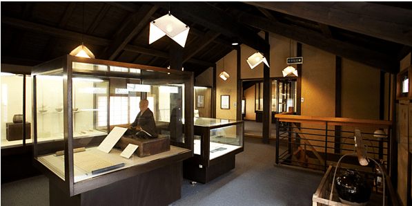 → 宇治茶の知られる老舗「上林春松家」に伝わる歴史資料を公開するお茶の記念館。禁裡・幕府や大名家に茶を運んだ呂宋壺や豊臣秀吉の書状などを展示している。四百五十年の歴史を誇る上林春松家は「御物御茶師」として幕府御用のお茶を作るための茶園管理、製造・精製、そして御物茶壺に葉茶(碾茶)を詰める茶詰めという仕事に従事。この歴史を刻む数々の品を所蔵している。