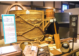 → 酒造りの名匠といわれる“丹波杜氏”の酒造記念館。館内では、酒造技術の近代化によって失われつつある昔ながらの酒造りの工程をはじめ、酒造道具や資料などが展示されている。丹波杜氏の由緒などの資料もあり、過酷な条件の中で腕を磨いてきた杜氏たちの歴史や、昔ながらの手作りでの酒の醸造過程をじっくりと見学することができる。