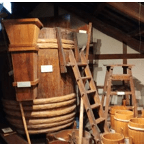 → 伝承館は南部杜氏による酒造りの伝統文化を保存・伝承する施設。古くから伝わる酒蔵を解体復元した土蔵造りの博物館で歴史的にも文化的にも貴重な施設となっている。