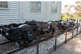 工場の側面の壁に沿ったところに台車が保存展示されているが、明治32(1899)年の「東京車輌製造天野工場製ハ29」の台車とみられる。明治末年には、既に機関車製作の国産化が進み始めていることを物語る。