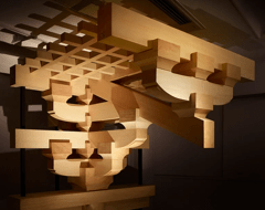 次の「木を生かす」展示では、木の個性と性質を最大限引き出そうとする日本の匠たち技を紹介、木のクセを読み、適材適所に使う職人の姿が強調されている。