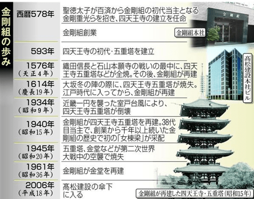 ・参照:飛鳥時代創業・金剛組(2)「命がけで」四天王寺五重塔再建https://www.sankei.com/article/20180710-FKOCL5PJABO73OEUDSGIIIURHE/