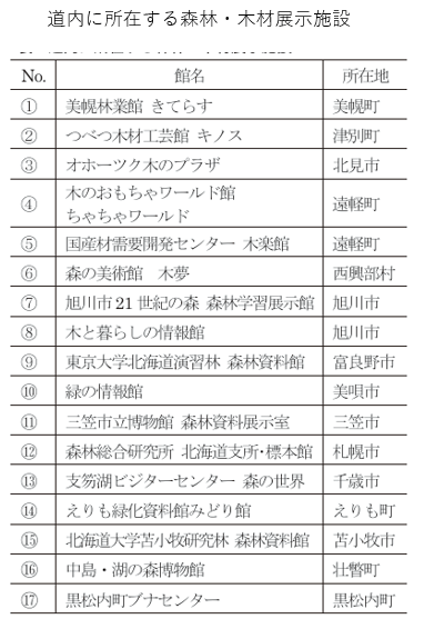 ♣ 北海道にある森林・林業・木材・木製品の展示施設