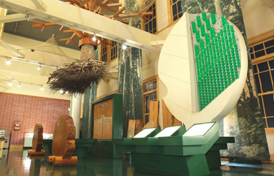 →「緑の情報館」は、森林や樹木、みどりの環境についてのさまざまな情報や林業試験場の研究成果を展示・紹介する林業試験所の施設。森林の多面的機能、森林の生物多様性の保全、林業の健全な発展、みどり環境の充実や緑化樹関連産業の振興など研究の4つの基本方向に従って研究成果を紹介している。(写真参照)