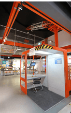 → 科学技術館は、現代から近未来の科学技術や産業技術に関する知識を広く普及・啓発する目的で1964年に設立された公的施設。産業技術の幅広い分野にわたり関連の深い業界団体や企業等が展示の制作や運営について協力している。家電、電気、鉄鋼、自動車、石炭などのほか4階部分に「建設」館が設けられている。ここでは、橋やトンネルなどさまざまな建造物について解説し、その技術内容と災害からまもる工夫が紹介されている。