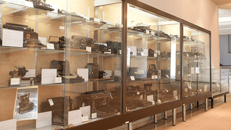 → 昭和28年にタイプライター販売店として開業した伊藤事務機の運営するタイプライター博物館。営業のかたわら収集した英文タイプライター、計算機、チェックライターなど100台あまりを常設展示している。コレクションの中には、イギリス製のタイプライター「ROYAL BARLOCK」、アメリカ製の「THE PROTECTO GRAPH」などがあり展示されている。