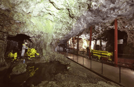 ― 地底博物館」は、鯛生金山の坑内入口から800mほどの距離を見学できる地底博物館。 館内では坑道の模型をそのまま残し、採掘の様子を人形や模型でリアルに再現している。坑道空間は各所に案内・解説パネルを配置されており、ライトアップによりダイナミックな迫力で鉱山の歴史や採掘技術をわかりやすく歩きながら観察できる。砂金採り体験など人気のコーナーも設けられている。