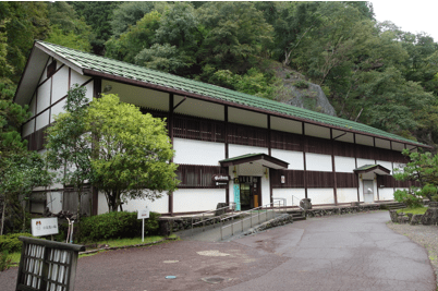 → この資料館は、別名「いも代官ミュージアム」とも呼ばれている。この地域にあった江戸幕府の代官所の遺構を地元有志が中心となって改修し、1976年に設立した民間の資料館である。地域によって育てられた石見銀山の歴史や文化を後世に伝える拠点と位置づけている。常設展には、歴史、鉱山、文化、鉱物の展示があり、「歴史」では江戸幕府直轄であった石見銀山の歴史、「鉱山」では採鉱から製錬に至る銀の生産過程、「文化」では江戸時代の銀山町の様子、「鉱物」コーナーでは石見銀山で採取された銀鉱石などを展示紹介している。