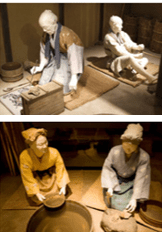 ー 徳川時代、幕府に献上する「上納銀」を作るために丹念に精錬が行われ、この銀の精錬場所が「吹屋」と呼ばれた。 吹屋の作業は、(1)素吹(2)真吹(3)南蛮絞(4)荒灰吹(5)上銀吹の5つの工程に分かれている。資料館では、11体の電動人形が各工程ごとの作業の模様が忠実に再現されている。