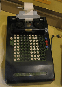 人類は文明が成立して以来、社会的営みの一つとしてモノを数え計算するという行為を発展させてきた。当初は、手が“数え”の基準であったが、次第に石や木片などの道具を使うようになり、算木、アパガス、計算尺など数学を応用した器具も作られるようになった。そして、数字を書き記す技法が発展すると手動で操作をおこなう計算器具が生まれている。こうしたことを背景に、機械式計算機は17世紀頃、歯車式計算機の開発がはじまり、19世紀には数学理論化と物理学の発展により真空管による電子式計算機(ENIAC)が発明され、次にトランジスタ・ICによるコンピューター開発と急速に進化している。一方、日本では、長くそろばんが計算用具として使われてきた。機械式計算用具の発展をみると手動式、電動式のものから卓上電子計算機(電卓)、そしてPCへと進化し日常的に広く使われるようになっている。
